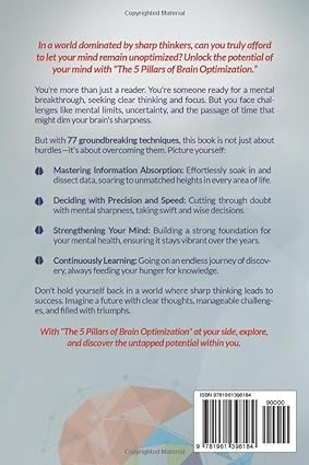 'The 5 Pillars of Brain Optimization' is your key to transcending these limitations, offering a comprehensive approach to brain training, smart thinking, and mental sharpness. This book is not just about improving cognitive function; it's about transforming your life through mental fitness.